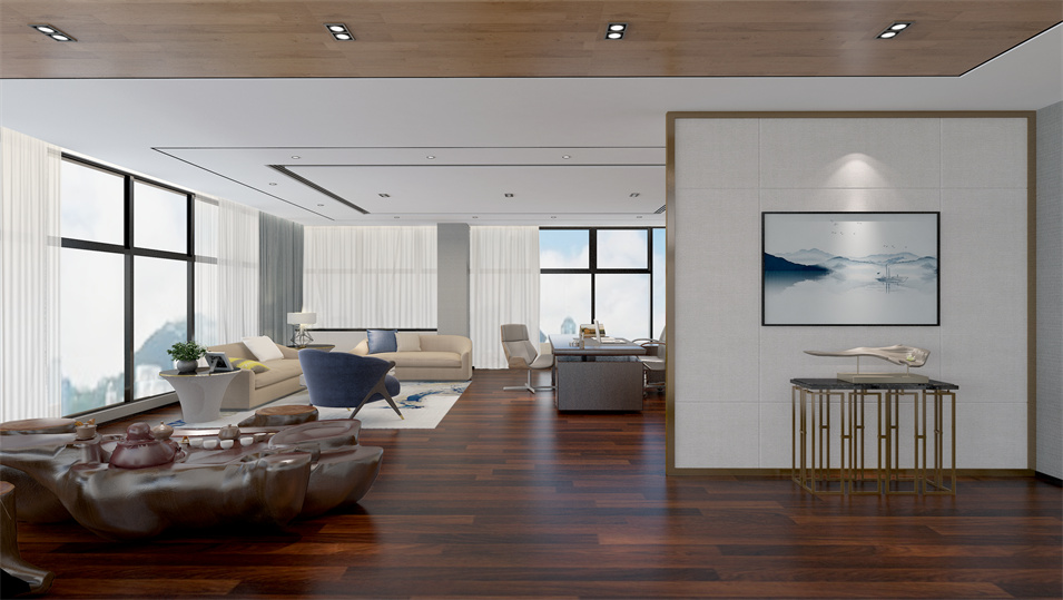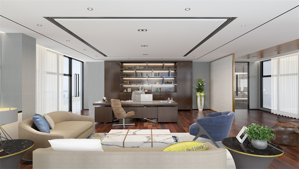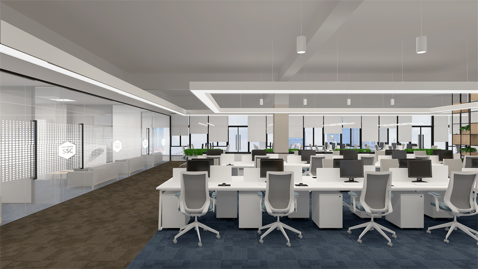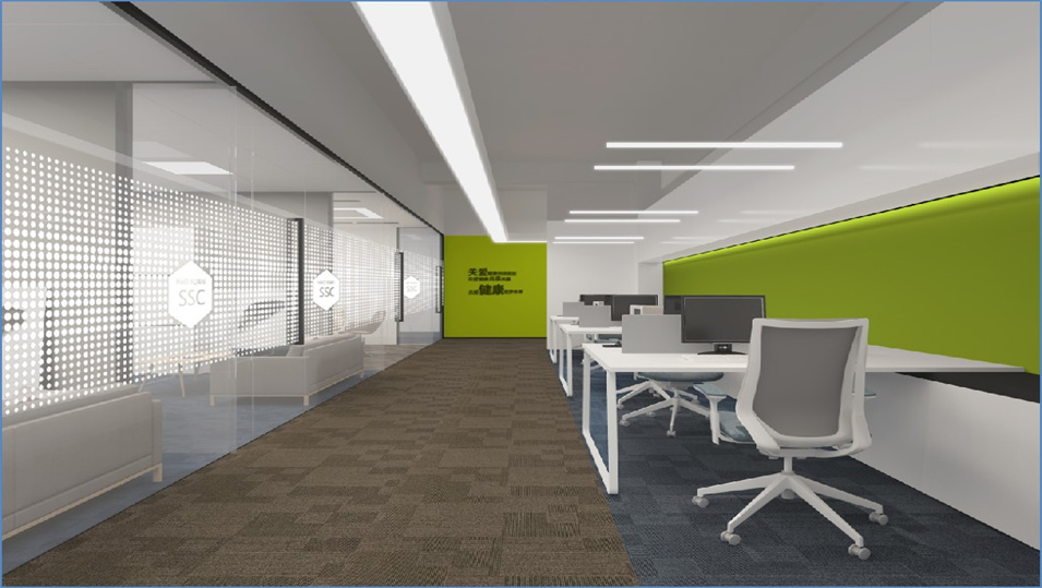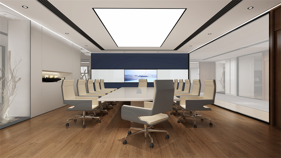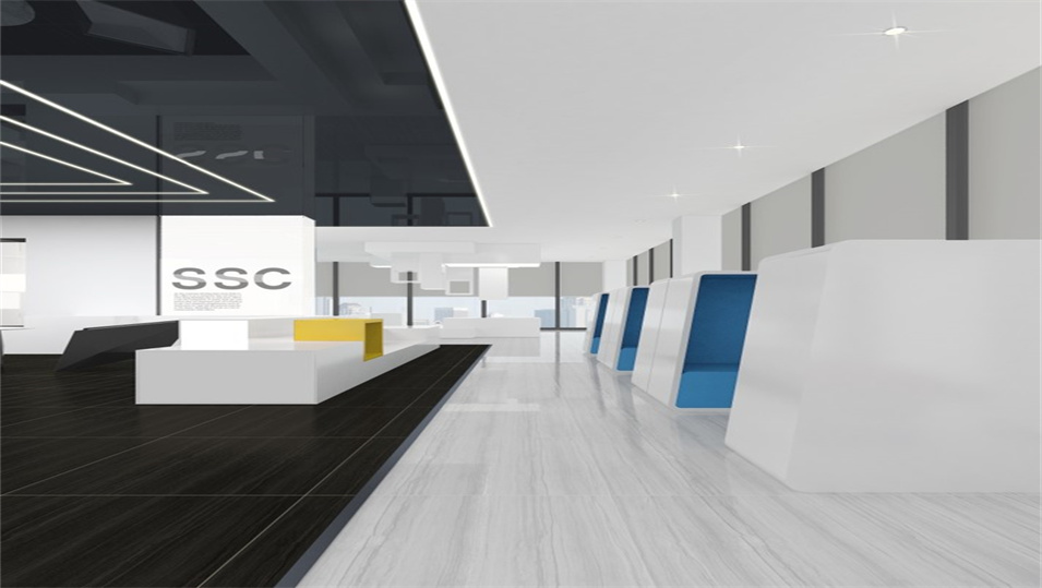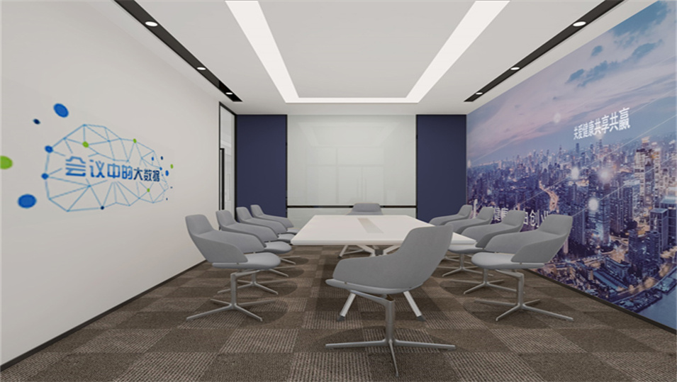 設(shè)計(jì)介紹:主要展示前臺、洽談區(qū)、走廊、貴賓區(qū)、會議室、辦公區(qū)等各個區(qū)域?qū)嵨飯D,設(shè)計(jì)師們采用現(xiàn)代簡約風(fēng)格辦公室設(shè)計(jì),主要以白色為主,藍(lán)色更符合智能化科技的公司形象,通過幾何圖形與條紋裝飾打造科技智能的辦公空間。