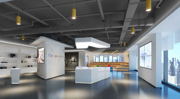 與一般的展廳相比,要采用科幻風格,這種展廳的裝修空間更加緊湊,更加炫酷,展廳區(qū)域一定要大,辦公區(qū)域和展廳區(qū)域風格一定要相融合。